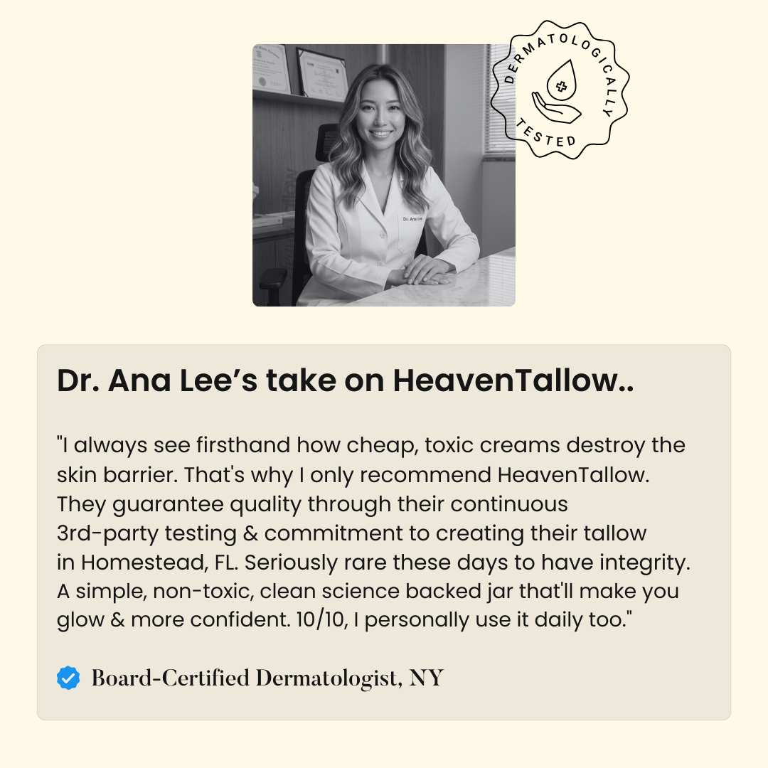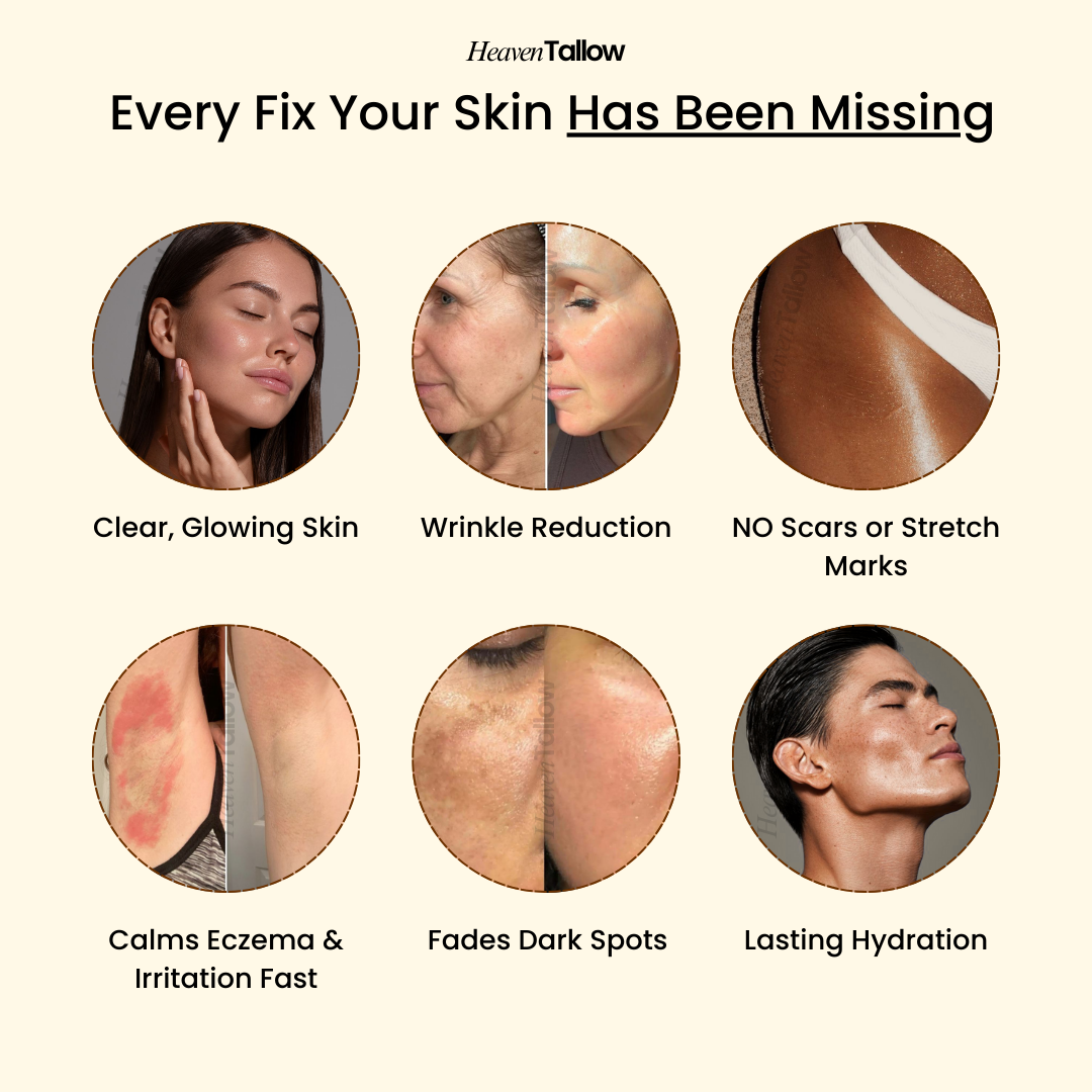 Dry, tight skin is a sign your moisture barrier needs real nourishment. Heaven Tallow uses pure, organic farm-fresh tallow your skin absorbs instantly.